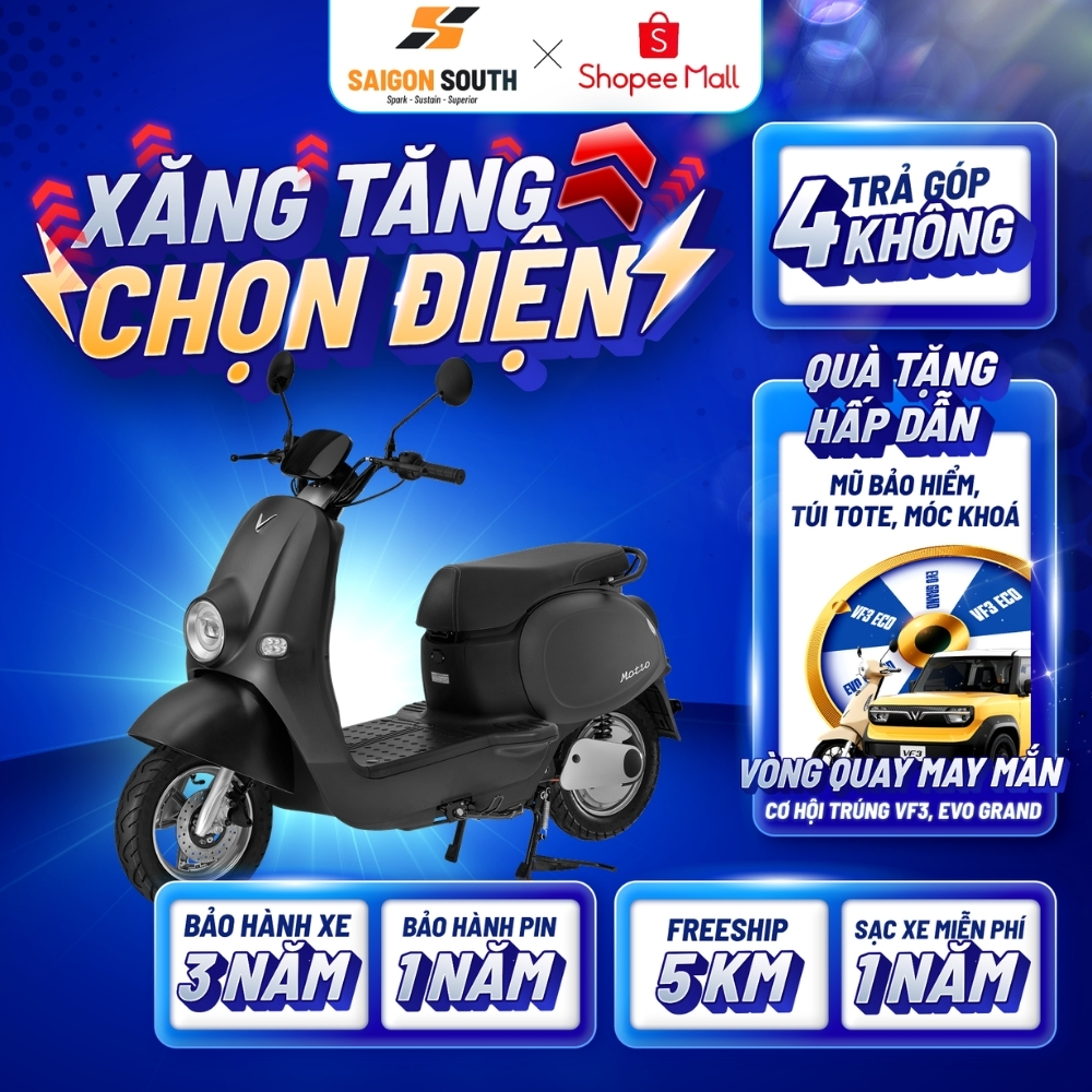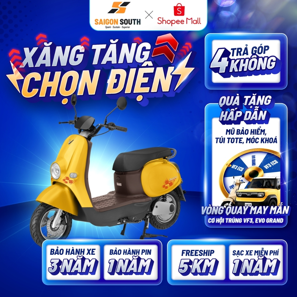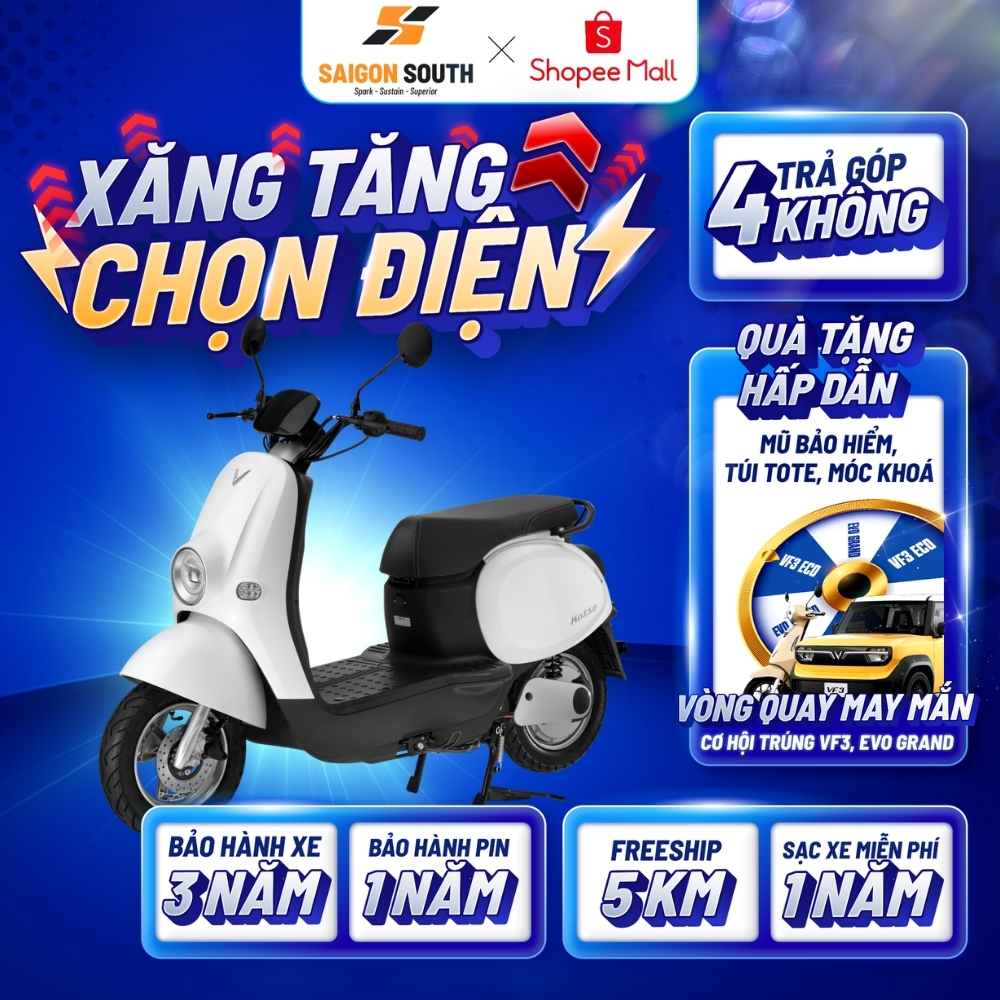 - Động cơ BLDC được tích hợp trên vành bánh sau, không cần hệ thống truyền động giúp tối ưu kích thước, khối lượng, hiệu suất cho toàn xe.